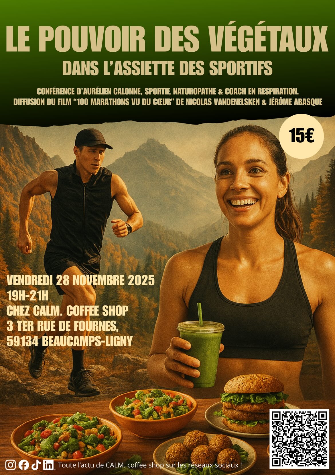 Rejoignez-nous pour une soirée inspirante avec Aurélien Calonne, sportif, naturopathe et coach en respiration. Il animera une conférence captivante sur le thème « Le pouvoir des végétaux dans l’assiette des sportifs ».